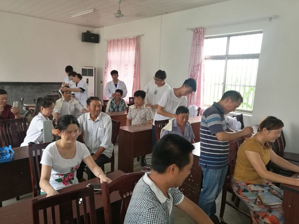 参观结束后,师生们还前往红庙镇横塘村,为村民提供了针灸推拿、测量血压等义诊服务。