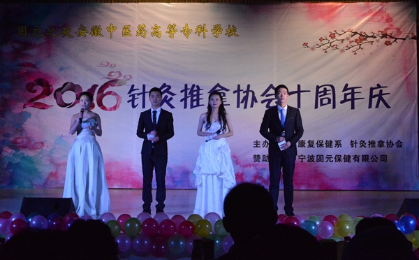 11月25日晚,由康复保健系主办、校针灸推拿协会承办的“固元之夜”——校针灸推拿协会十周年庆典晚会在办公楼会堂举行。康复保健系主任刘茜、党总支书记方茂水、副主任潘道友和学生处副处长和薛,以及300余名师生到场观看。