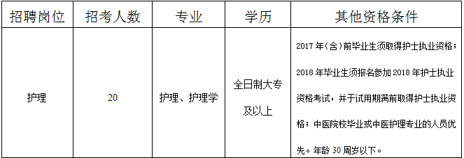 4、符合《2018年南京市江宁区中医医院公开招聘编制外护理人员岗位信息表》中岗位要求的其他条件(详见《岗位信息表》)。