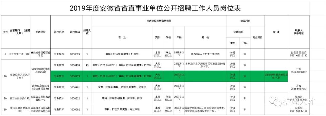 招聘单位咨询电话:详见《2019年度安徽省省直事业单位公开招聘工作人员岗位表》