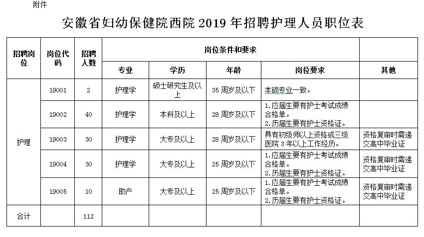 根据安徽省妇幼保健院建设和发展的需要,现面向社会公开招聘112名护理人员,现将有关事项公告如下: